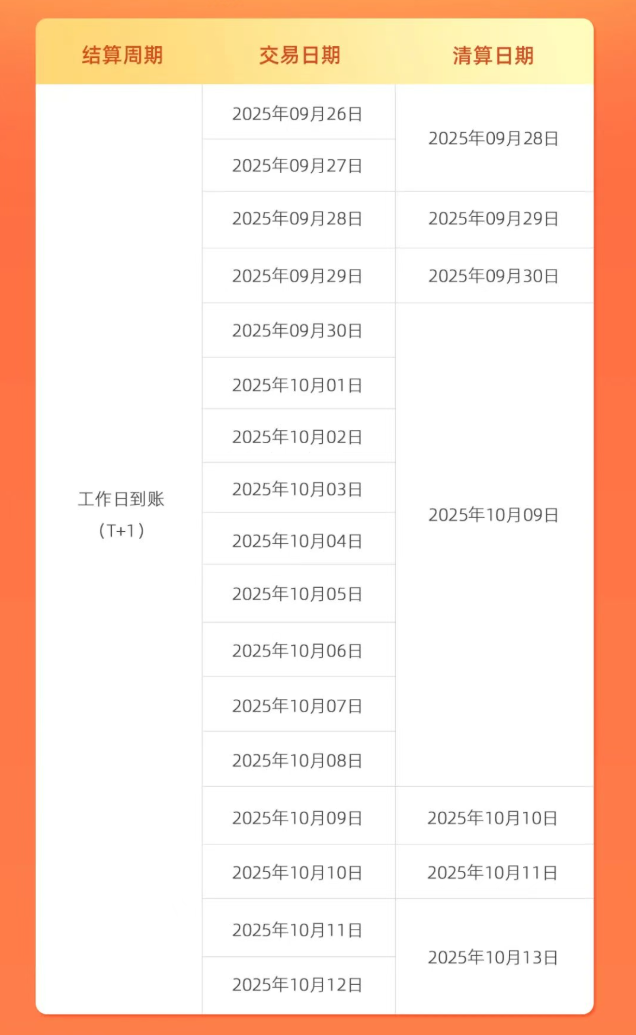 2025年10月09日会将多天资金进行合并清算,整体金融系统压力较大,可能存在延迟到账情况,请您耐心等待。
